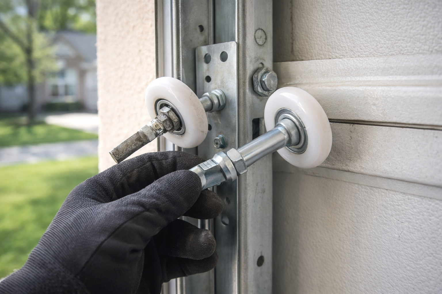 Rollers help guide the garage door through the track. When they wear out, the door can become noisy, rough, shaky, and harder on the opener and surrounding hardware.